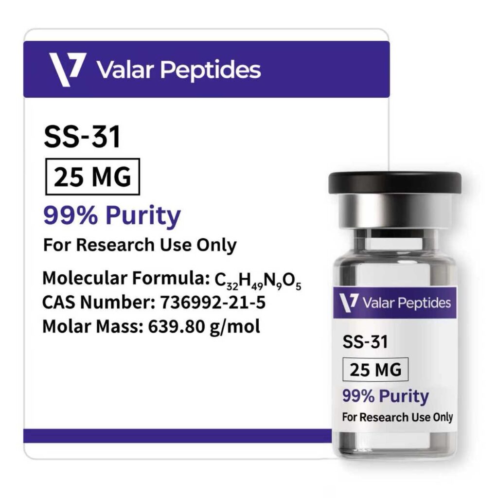 SS-31 (Elamipretide or MTP-131) is a synthetic tetrapeptide that selectively targets the inner mitochondrial membrane by binding to cardiolipin, a unique phospholipid essential for mitochondrial structure. Through this interaction, SS-31 stabilizes mitochondrial cristae, promotes efficient electron transport chain function, and enhances ATP production while reducing reactive oxygen species (ROS). It also prevents the opening of the mitochondrial permeability transition pore (mPTP), thereby protecting cells from oxidative stress and apoptosis.